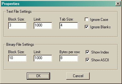 If this box is checked all blank characters (white space) in a line will be ignored, when the line is compared to another line. Completely blank lines will not be ignored.Binary File Settings