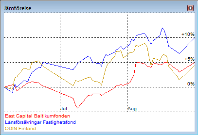 Om du klickar på "Visa Graf" så visas en graf över hur kursen för de förbockade fonderna har utvecklats under perioden.
