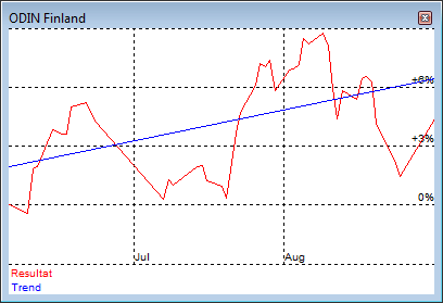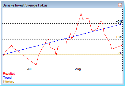 Trenden är den genomsnittliga värdeförändringen under perioden och beräknas med en matematisk metod som kallas minsta-kvadratanpassning. Trenden ger i regel en bättre bild av den framtida kursutvecklingen än resultatet eftersom resultatet är direkt beroende av dagskursen. Ett frågetecken betyder att trenden inte är pålitlig på grund av otillräcklig kursinformation.