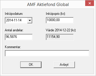 Det krävs lite mer arbete att administrera en portfölj än en bevakningslista. För varje fond som läggs till i en portfölj så måste inköpsdatum, inköpspris och antalet fond-andelar matas in. Inköpspriset ska anges i svenska kronor. Det är även möjligt att lägga till en kommentar för varje fond. Det går att ändra uppgifterna i efterhand genom att markera fonden och välja "Ändra..." i menyn "Redigera". Om antalet andelar ändras på grund av utdelning, köp eller försäljning så måste uppgifterna uppdateras manuellt.