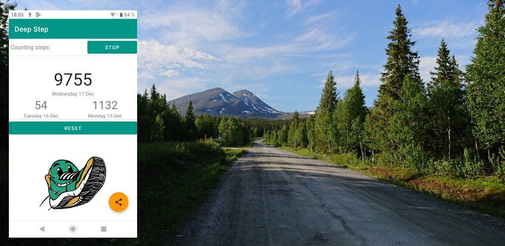Deep Step is a step counting app. It uses the step sensor in your device to count how many steps you take. You can turn the step counting on and off at any time.